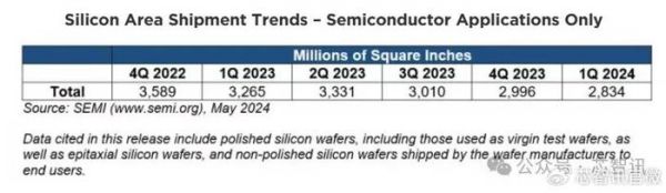 5月3日消息,据国际半导体产业协会(SEMI)统计,今年一季度全球硅晶圆出货量降至28.34亿平方英寸,环比下滑5.4%,同比下滑13.2%。
