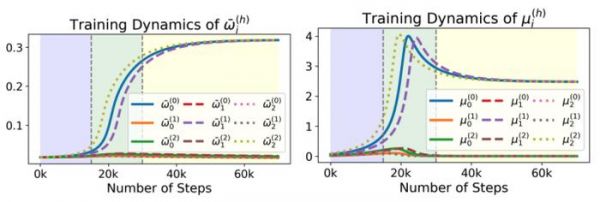 通过此,他们发现:梯度流算法的确是收敛的。并且收敛有三个阶段——(a)预热阶段、(b)任务分配阶段 、以及(c)最终收敛阶段。