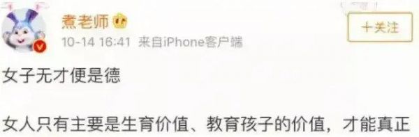 他的豪言壮语不限于有“娶妻彩礼不得超过10万”“女子无才便是德”“我能同时爱很多人”“喊独立的都是蠢货贱女,没有例外”......