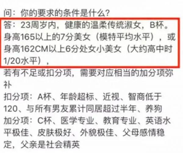 女友的要求必须是处女,传统淑女,23岁内,模特平均水平。