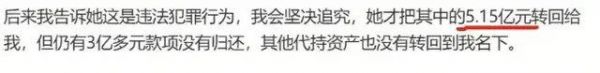 他栽在了二妞妈手上,2024年4月,他通过公司官方账号发文对二妞妈控诉,声称二妞妈拿着8个亿,孩子也不带,独自跑路了,虽然还了5个亿,但还有3个亿没还。