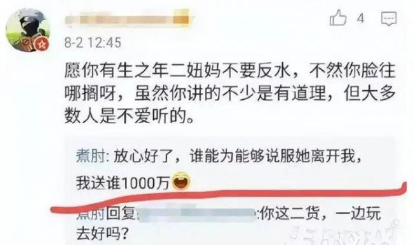 他表示,从不担心二妞妈会背叛他,因为没有哪个男的能送给她1000万人民币,二妞妈从来都看不上那些小白脸、草包男,只爱煮肘一人。