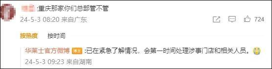 有网友在华莱士官方微博下询问,官博回应:“已在紧急了解情况,会第一时间处理涉事门店和相关人员。”
