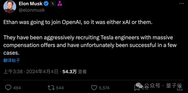 事因是特斯拉视觉科学家Ethan Knight离职,加入到了马斯克的xAI公司。