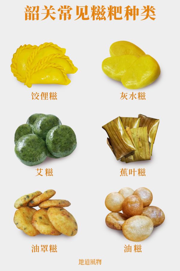 韶关地形以山地丘陵为主,河谷盆地分布其中,土地肥沃,水源丰沛,水稻种植历史源远流长。早在距今五千到六千年前的石峡文化遗址中,就有大量炭化水稻遗存以及石斧、石锛、石等生产工具被发现,作为岭南稻作文化的发祥地之一,稻米类食品种类自然丰富多样。除了搭配花样丰富的粥、粉、饭,糍粑和米饺同样是当地人生活不可或缺的碳水来源。