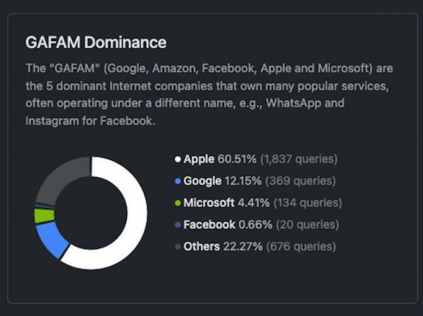 苹果的设备在已知对用户隐私采取可疑方法的服务方面也表现更好。例如,iPhone 平均每天联系 Facebook 服务器 20 次,而安卓每天则接近 200 次。