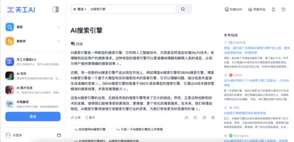 国内公司昆仑万维的AI搜索工具“天工AI”