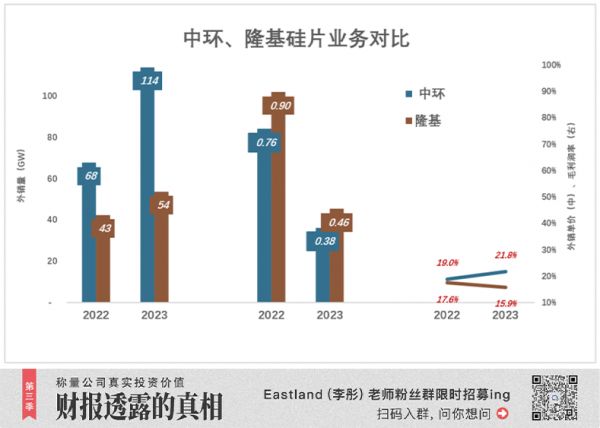 2023年,中环、隆基硅片售价分别降至0.38元/瓦、0.46元/瓦,中环毛利润率领先优势扩大到5.9个百分点!