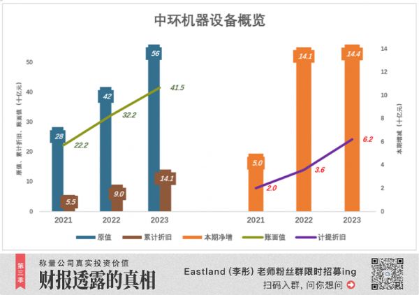 2022年、2023年,中环专用设备原值净增额均超140亿。
