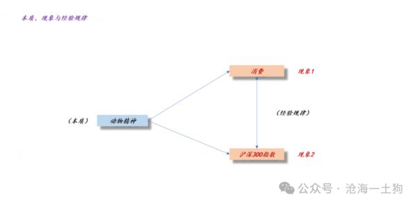 在这两个现象背后有一个我们看不见的本质——动物精神,消费数据是动物精神在居民生活领域的投影;沪深300指数是在居民金融领域的投影。