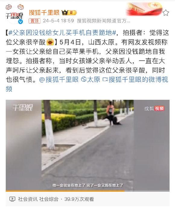 #父亲因没钱给女儿买手机自责跪地#女儿要买苹果手机,父亲没钱跪地自责,女孩嫌丢脸呵斥[吃惊]。为啥一定要买苹果手机[疑问]?