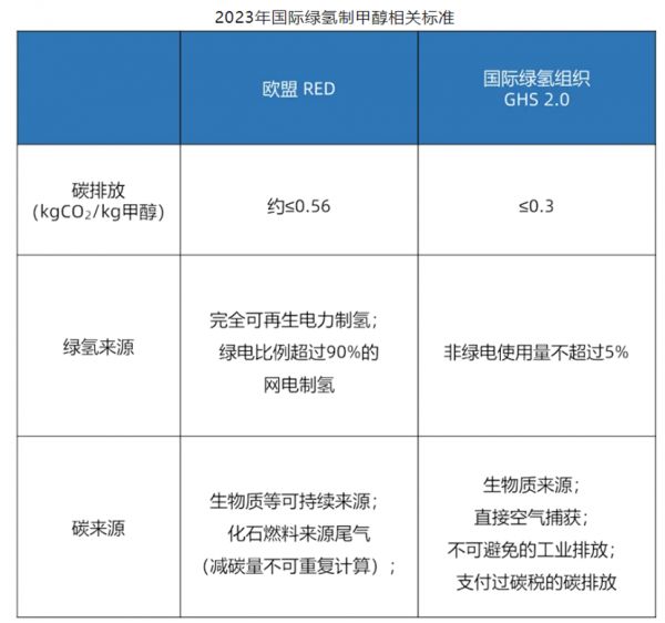 欧盟对绿色甲醇(或可再生甲醇)也有类似的标准。