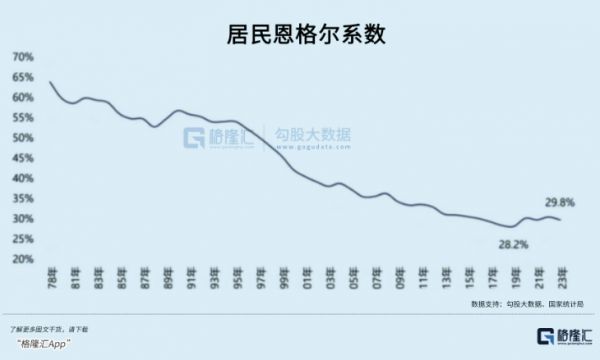 过去几十年,恩格尔系数都是不断下降的,代表居民的生活质量越来越好。