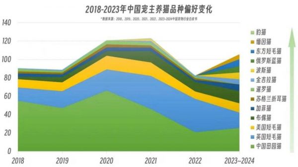 尽管目前市面上并没有官方的“全国宠物普查小组”,但通过对小红书和美团、大众点评等平台的调查,惊蛰研究所发现,在品种猫中,除了中华田园猫,英国短毛猫、布偶、缅因、金吉拉都比较受宠物主欢迎。根据《2023-2024中国宠物白皮书》的数据,在过去6年,英短、美短、布偶和加菲始终和中华田园猫稳坐品种偏好前五。