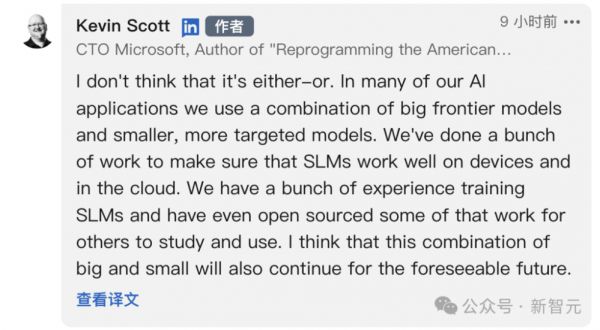 这并不是一个非此即彼的关系。在许多AI应用中,我们结合使用大型前沿模型和更小、更有针对性的模型。我们做了大量工作,确保SLM在设备上和云中都能很好地运作。我们在训练SLM方面积累了大量经验,甚至还将其中一些工作开源,供他人研究和使用。我认为,在可预见的未来,这种大与小的结合还将继续下去。