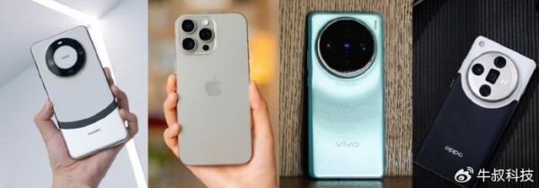 (从左到右:华为Mate60 Pro+、iPhone 15 Pro Max、vivo X100 Pro、OPPO Find X7 Ultra)