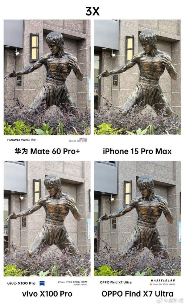 当然,影像硬件参数只是决定下限,移动影像的话,更多还要看软件算法优化,下面来看实拍样张对比。如果单纯看3X焦段下的白天场景,四款旗舰基本没有什么差距,画质呈现、色彩、光影、高光都没什么问题,拍摄画面清晰,更多的是彰显各家影调风格。