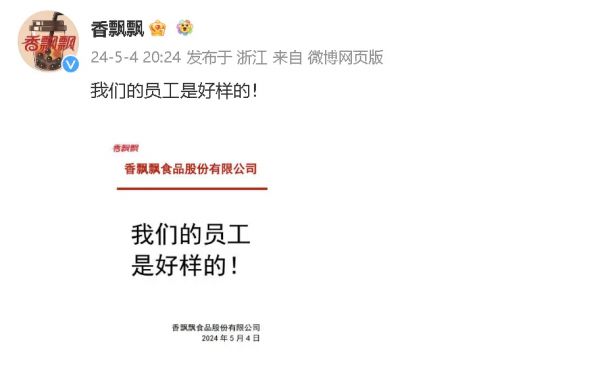 香飘飘官微回应九个字:我们的员工是好样的!