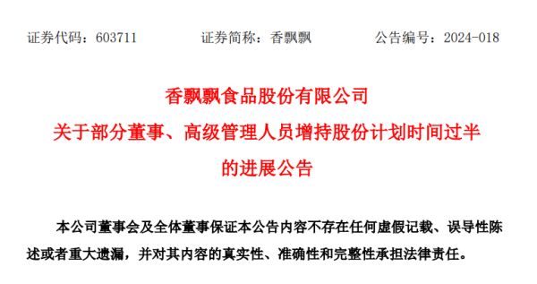 我查了下,5月6日,香飘飘的确发布公告,公司总裁杨冬云,董事兼副总经理杨静,董事、董事会秘书兼财务总监邹勇坚,原公司财务总监李超楠等4人共增持公司股份1318171股,增持金额合计1826.82万元。
