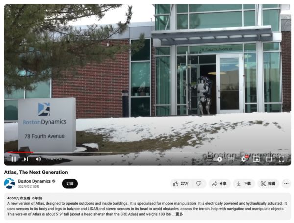 目前,这条视频的Youtube播放量已经积累到了4059万。2017年,Atlas再接再厉,用一个精彩的后空翻再度把波士顿动力送上全球热搜。