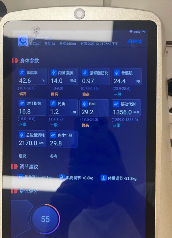 芝芝健身前的体测结果 | 图源受访者