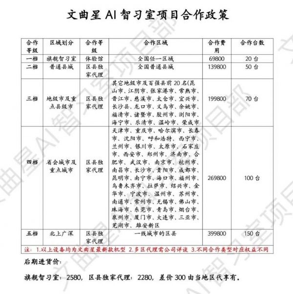 “双减带来的机会。”文曲星 AI 智习室在招商材料中说,传统教育培训面临着招生难、续费难、老师招培留用难等问题,但智习室借助学习机的“智能 AI 教育”,无需地推、无需另聘辅导老师,也不违反政策,“是双减和疫情之后的新风口”。