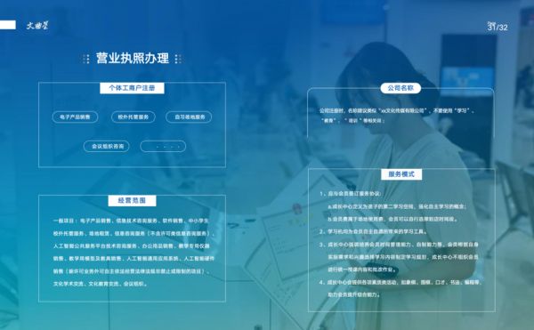 或许是为了规避风险,文曲星和赶考小状元的招商材料中着重向加盟商强调,注册公司时名称建议为“ XX 文化传媒有限公司”,不要使用学习、教育、培训等词汇。“我们这边是在双减政策下完全合法合规的。”两家招商人员均如此表示。