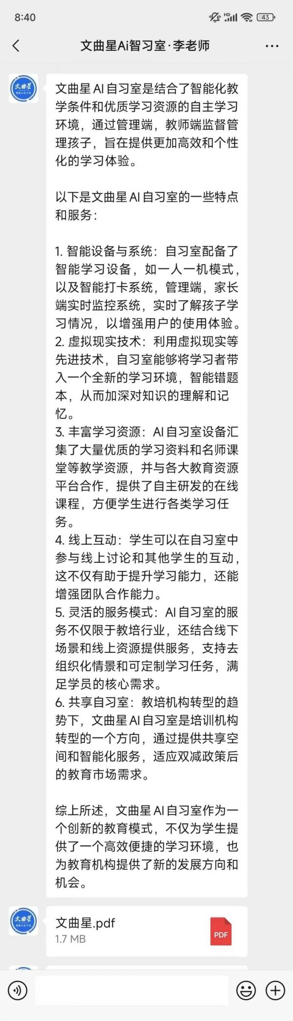这大概也是她门店中唯一和 AI 智能沾边的东西——除了随身携带的手机。学习效果好不好她没有详细介绍,但她认为这是未来的方向。“AI 正在赋能教育变革。”她在自己的社交账户上说,即便她此前从未接触过教育行业。过去几年她在北京,创过业,上过班,兜兜转转之后回到山东定居、生子,终于找到一个“时代趋势”。