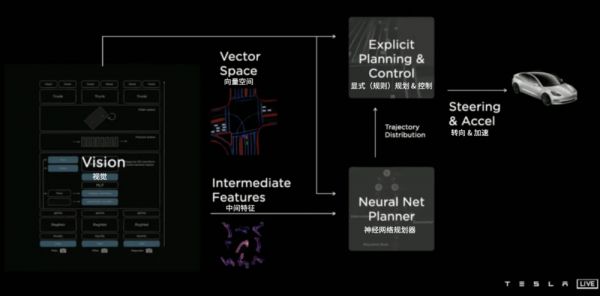 而且利用 Transformer 架构做成的模型,输出的信息可以直接用到后续的预测规划模块,也为 FSD v12 做成端到端模型打下基础。