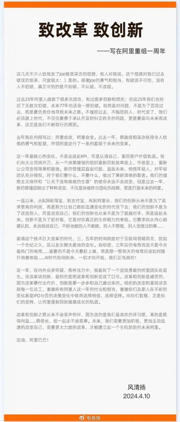 今年4月,马云在阿里内网发布长文《致改革 致创新》,提到“过去一年阿里最核心的变化,不是去追赶KPI,而是认清自己,重回客户价值轨道。”