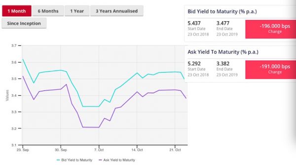 上述没买到华为债的公募基金经理也对超低发行利率感到意外,而这种“低”在对比之下显得更为突出。10月23日,南方电网在银行间市场和交易所发行跨市场企业债,3+3年期票面定价为3.59%,较华为同期限中票高出11个基点(bp);而剩余期限2.71年的“19中石油MTN004”,23日以3.48%的利率成交了9笔。相较之下,华为债的收益率之低显而易见。