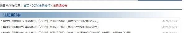 10月23日,华为境内首期中票“19华为MTN001”正式完成发行,最终票面利率定在3.48%,全场认购倍数3.08倍,边际倍数35.5倍,并将于10月25日正式上市交易。后续建行将承销华为的第二期中票,规模亦为30亿元。