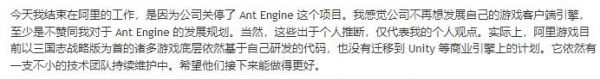 “我感觉公司不再想发展自己的游戏客户端引擎,至少是不赞同我对于Ant Engine的发展规划。当然,这些出于个人推断,仅代表我的个人观点。”云风表示。