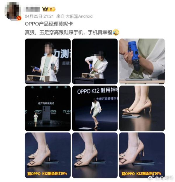 早些天,OPPO在深圳举行了发布会。会上,OPPO致敬了当年能开核桃的诺基亚,产品经理莫妮卡贡献了几个名场面,包括用电钻钻屏幕,以及用高跟鞋狠踩背板。最终结果,当然是手机都毫发无损。