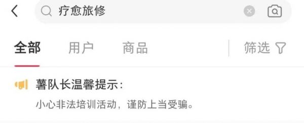 譬如说,在小红书平台搜索关键词“疗愈旅修”就会被提醒“小心非法培训活动,谨防上当受骗”。可见目前疗愈师培训行业还缺乏严格监管,市场相当混乱。