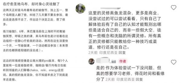 另外,也有网友吐槽巴厘岛疗愈圣地乌布商业机构鱼龙混杂,质量良莠不齐。消费者往往难以辨别哪些是真正的高质量疗愈服务,容易受到低质量或欺诈性产品的误导。
