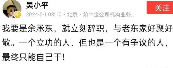 五一劳动节当天,华为内部一份人事调整文件宣布,华为终端BG CEO余承东正式卸任,迅速引发科技圈的舆论。中金公司前高管吴小平在社交媒体平台公开评论表示,余承东应该借此机会立即从华为公司辞职,与老东家好聚好散,然后自己去干一番大事业。