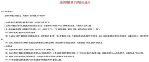 同时,凤凰网科技晒出了小米集团的内部邮件。据悉,小米集团此次还将成立集团战略市场部,统筹集团所有品牌、公关、市场相关工作,下设集团品牌部、集团公关部、集团战略市场作战室三个部门。