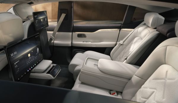 当然,ET7行政版上显著的变化还有后排屏幕。这两块14.5寸的OLED高清屏幕提供了3K的高清分辨率,并能够自动旋转和调节,可同步无线投屏,并能实现视频通话,方便商务人士提升工作效率。