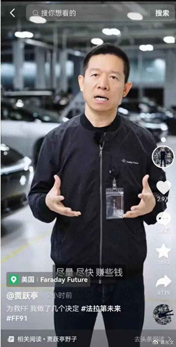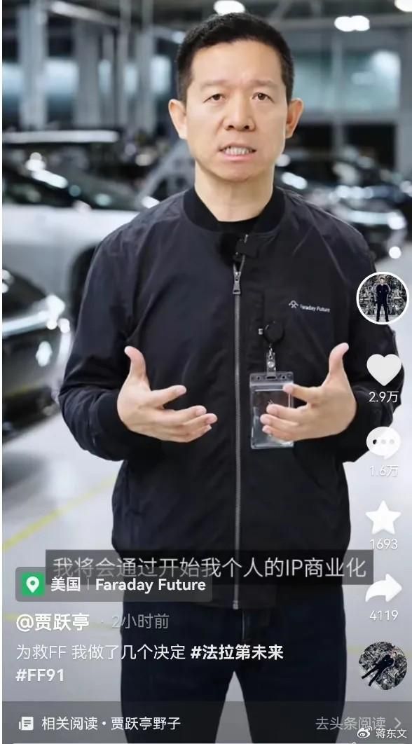 昨天,贾跃亭发布视频称“为救FF,我做了几个决定”。