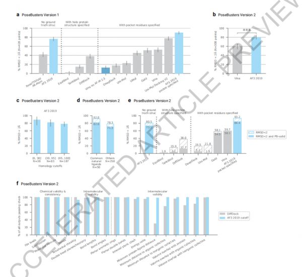 论文显示,在无需输入任何结构信息的情况下,AlphaFold 3比PoseBusters基准测试中最好的传统方法准确率高50%,这使得AlphaFold 3成为第一个超越基于物理的生物分子结构预测工具的人工智能系统。