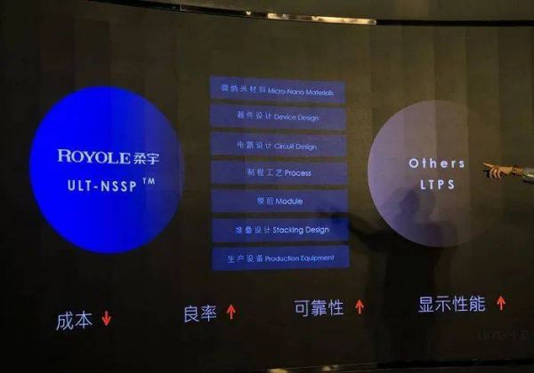 刘自鸿对外的说法是,LTPS技术虽然已经步入成熟期,但硅的物理特性决定了它在柔性弯折可靠性和制造成本上具有先天短板。柔宇方案的材料堆叠技术、生产设备、器件设计、制程工艺、路线设计、都与前者完全不同,能够在保证良率的前提下,更大程度地简化生产流程、降低投资成本和生产成本。