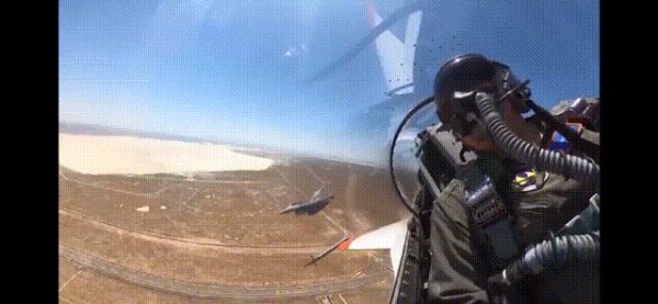 AI驾驶的F-16 战斗机(左)与人类驾驶的F-16并肩飞行,两架飞机彼此相距不到304米
