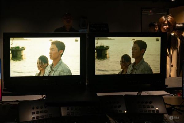 电影《三大队》的后期制作,采用了索尼的监视器产品(图片来源:钛媒体APP作者拍摄)换句话说,在整个电影、电视剧甚至是很多电视直播内容的生态中,“索尼全家桶”是很常见的配置。理解了这层关系,自然也就能明白为何索尼选择了还原度高的调色风格,因为它的电视,直接对标的就是自家几十万一台的HDR内容监视器,而后者恰恰又是导演在片场以及调色师在后期处理画面时的参考对象。
