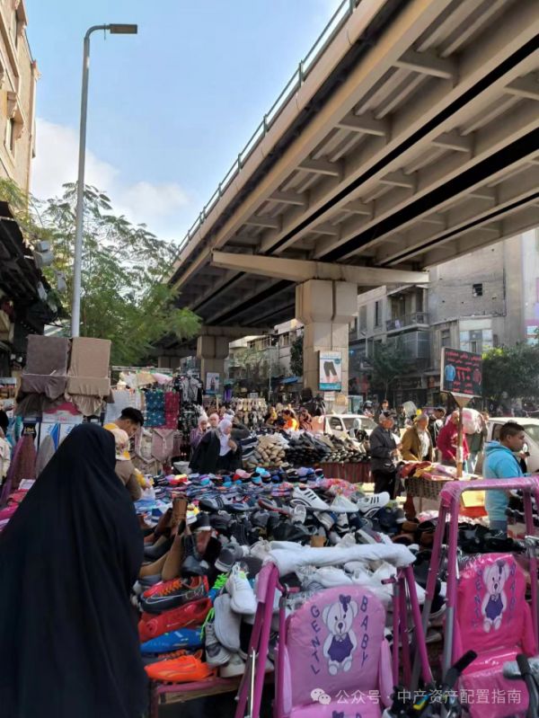 在开罗,我特意去当地最大夜市、老城区去晃悠了两三个小时,感觉经历了中国30年前的小商品市场一样。下面这个市场离爱资哈尔清真寺不远,几乎就沿着头上这个立交桥在马路两边摆满了摊,大概有2公里长,卖各式各样的生活用品,拖鞋、t恤、被子、灯具、运动鞋、塑料制品等等,拖鞋50磅,t恤80磅等,价格都很低廉,感觉就是义乌小商品一条街,全都是假冒伪劣产品。