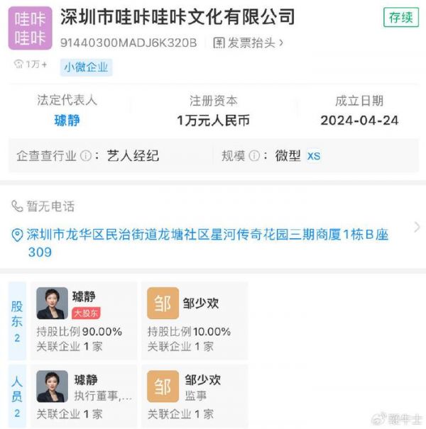 再加上此前4月24日在深圳和前助理成立的新公司,可以进一步佐证璩静要做的事情可能和自己还在职的公司百度并无关系。