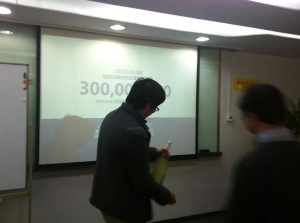 2013年庆祝有道词典安装量突破3亿,周枫开了瓶香槟
