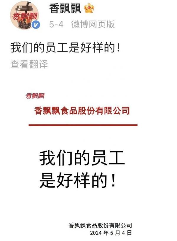 对于“讽日”事件,香飘飘官方在第二天回应了九个字:我们的员工是好样的!
