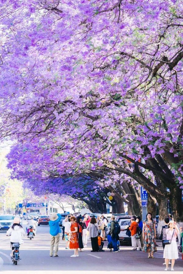 满城蓝花楹,让这座小城陷入紫色浪漫之中。摄影/白芪的旅行