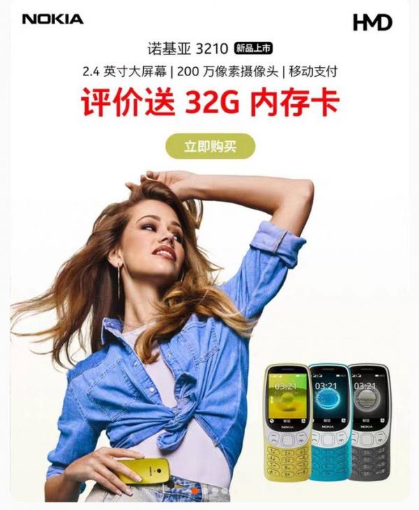 上述商品的详情页介绍,1999年,经典的诺基亚3210问世,随即风靡全球。现在回归的复刻版3210,一大亮点是将充电口更改为Type-C,并且支持移动支付。